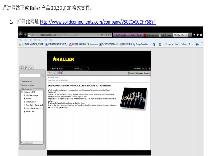 在KALLER网站上下载图纸以及实体的方法